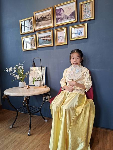 這裡需自備妝髮。幫貝貝綁了兩根辮子,很適合俏皮的鳳仙裝。我原來想盤髮梳個包包頭,可惜頭髮不夠長一直掉,最後就綁側邊低馬尾。