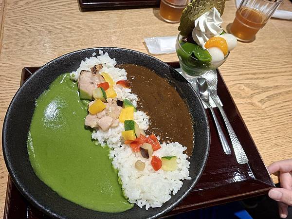 各式食物都是抹茶製作的,抹茶咖哩、抹茶蕎麥麵、抹茶烏龍麵、抹茶點心,賣相吸睛,吃起來也清爽。