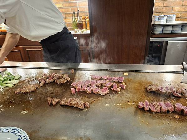 12 年前跟團來京阪神吃過這家鐵板燒,現在還是存在著,而且客人還是很多,可能是價格便宜就可嚐到神戶牛排套餐 (白飯、沙拉、醃製小菜、湯、豆芽、飲品) 之因。
