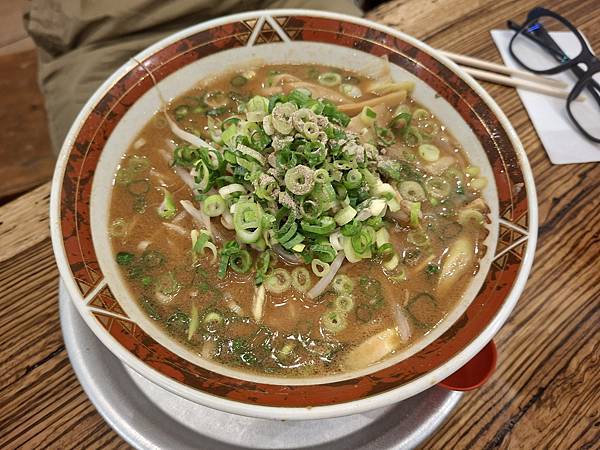 就在住宿附近找了這家,晚上 10 點多也幾乎客滿了,可惜這家只有豚骨醬油和味噌,所以就點了豚骨醬油來吃,碗裡有滿滿的蔥,也算是好吃的了。